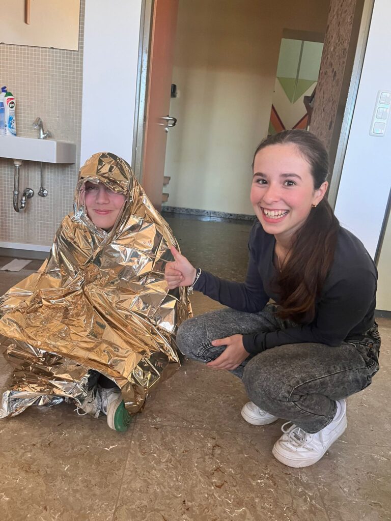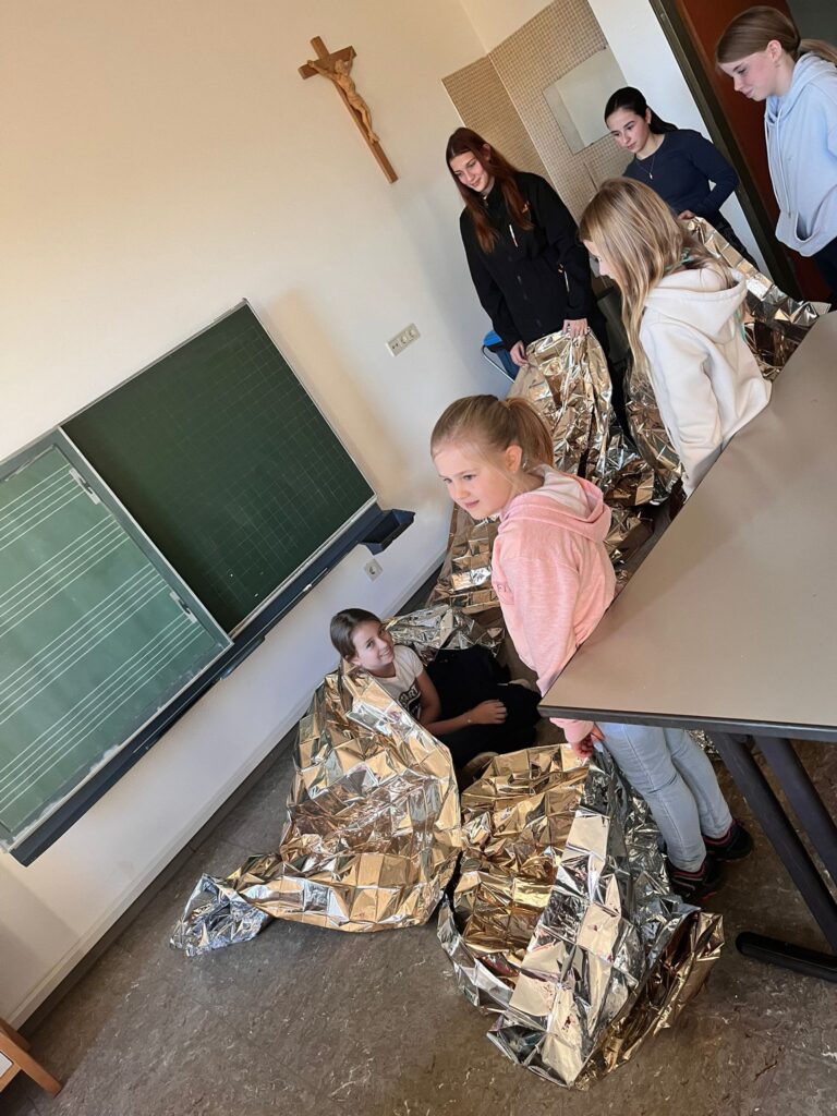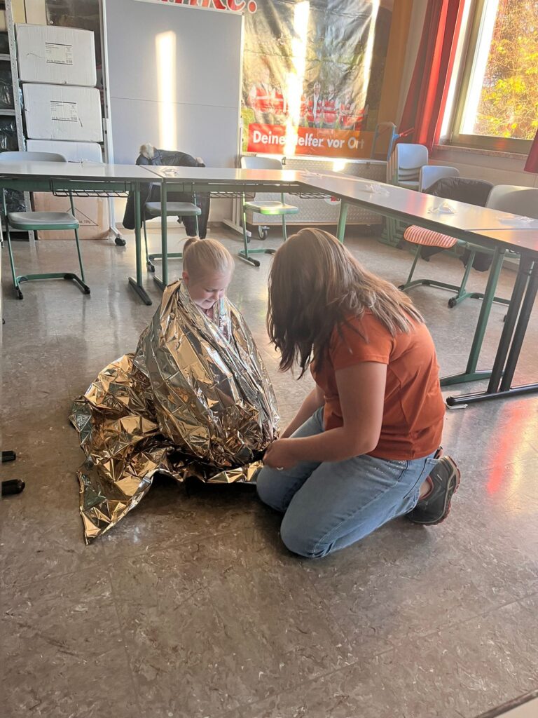 Jugend BRK Thema Wärmeerhalt bei Unfällen. Viel Übung mit viel Spaß!